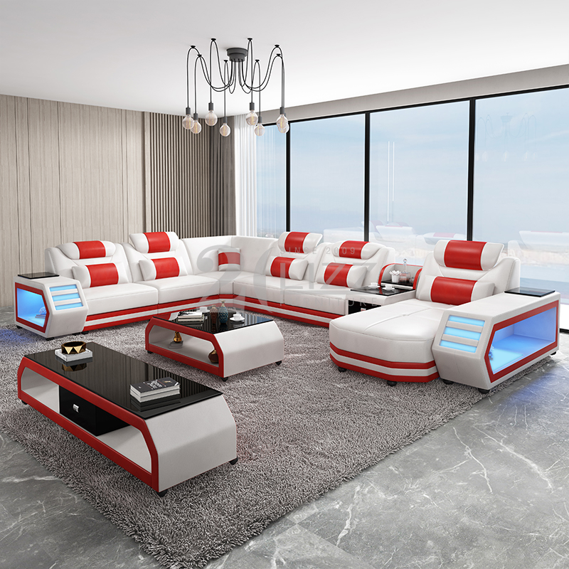 Komple set spesifikasyonu:(1 * L / R 3S kol + köşe + Kolsuz 2S + orta tablo +L / rŞezlong + sehpa + TV standı),6 Yastık atmak, şalterle ışık led.